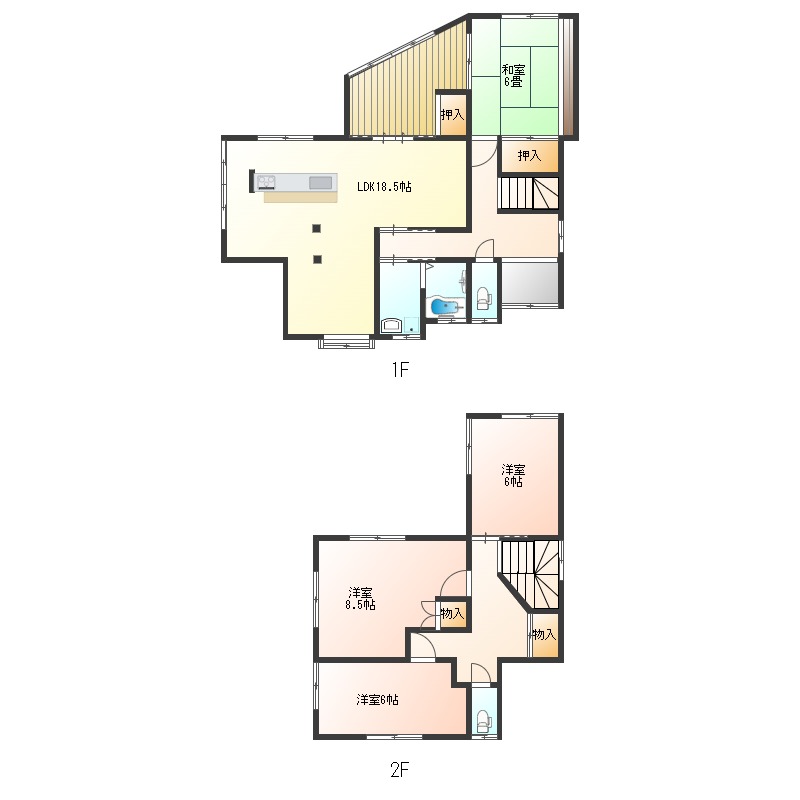 和室6畳 洋室8.5畳 洋室6畳 洋室6畳 LDK18.5畳
