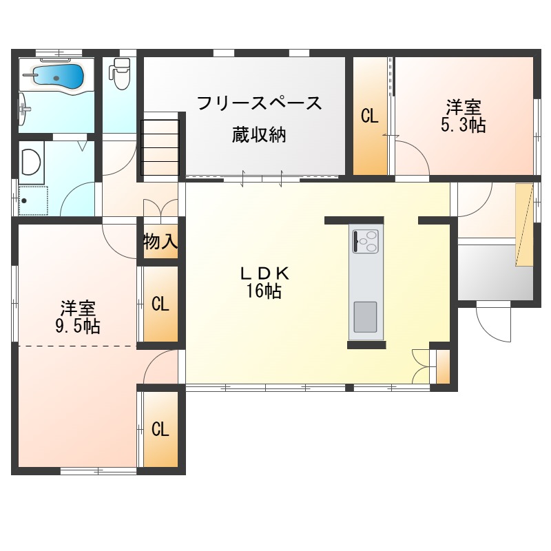 洋室9.5畳 洋室5.3畳 LDK16畳