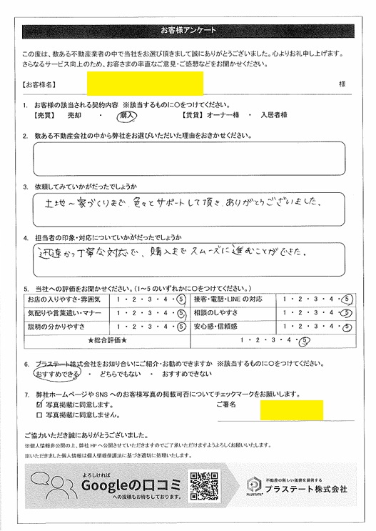 土地~家づくりまで、いろいろとサポートして頂き、ありがとうございました。